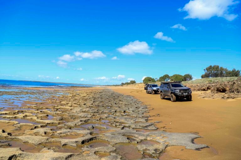 The Inskip Point barge crossing – tide dependent – is where the true adventure begins, delivering you straight onto the beach for that iconic run north. From River Heads, the barge lands at Kingfisher Bay Resort, where you’ll find accommodation, food outlets, fuel and resort facilities.