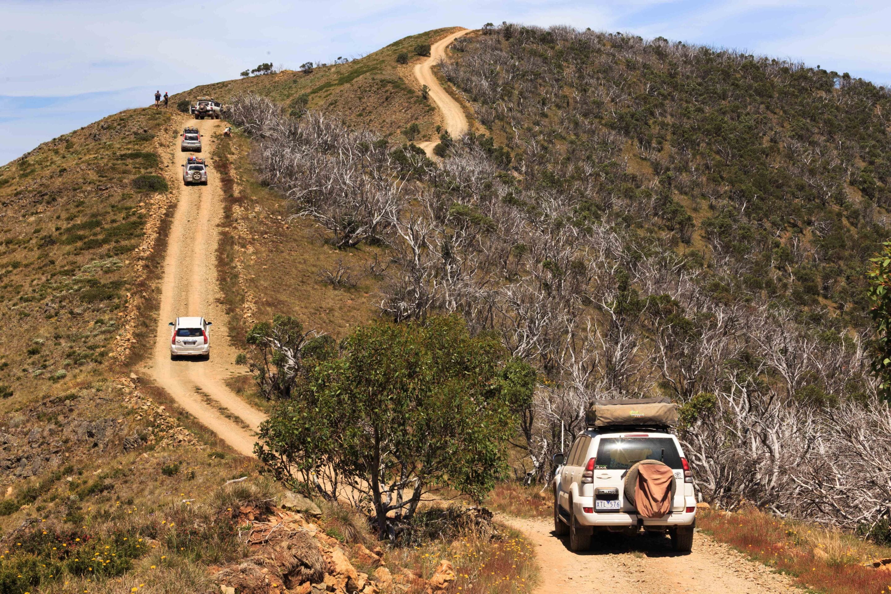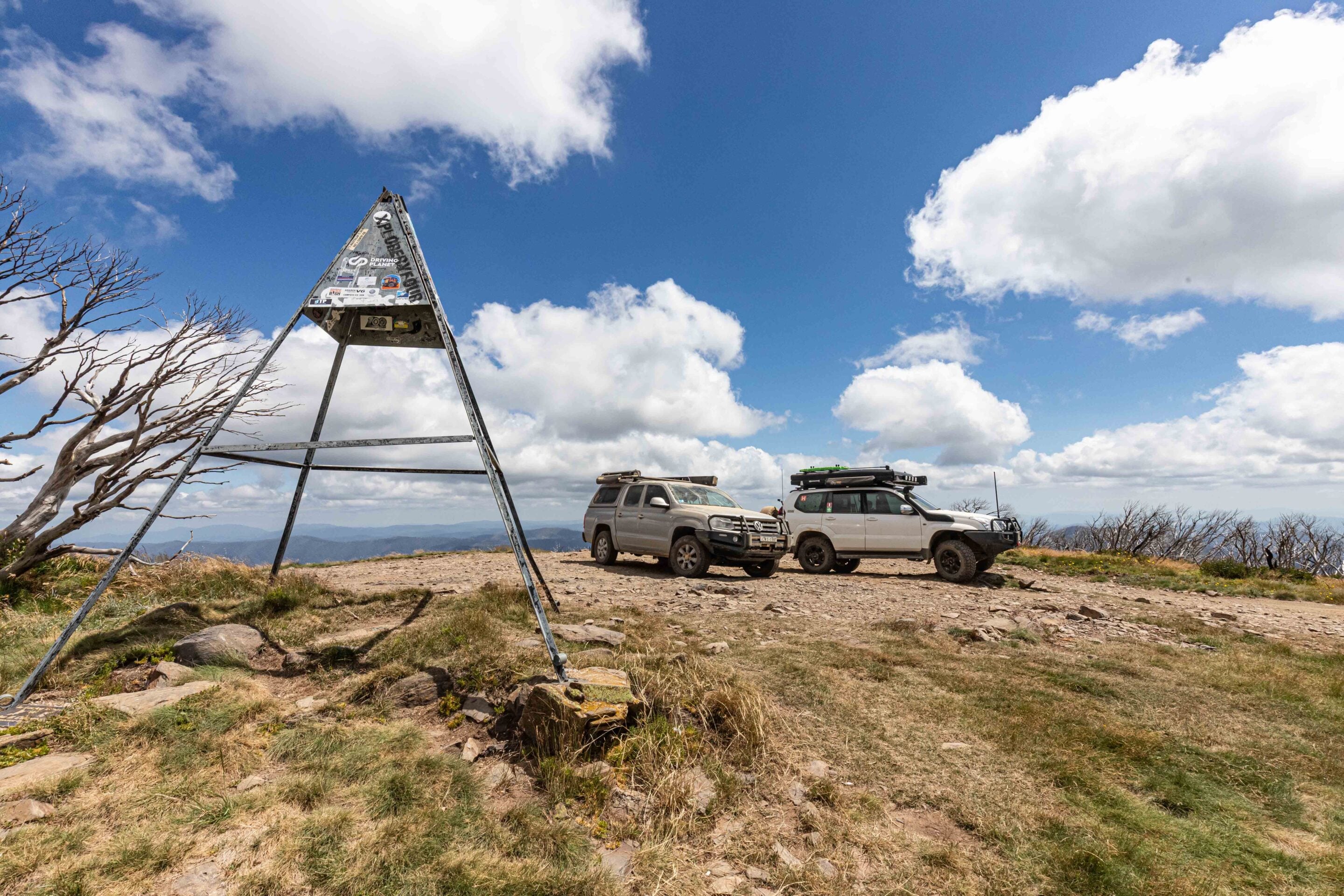 Reaching the summit feels like a proper achievement, but the experience does not end when the engine switches off. A short walk leads to the trig point, where the views open right up across the alpine country. On a clear day, you can see all the way to the Mount Hotham ski fields – a reminder of just how high and remote you really are. It’s the kind of spot that makes you linger a little longer, soaking in the silence and the scale of the landscape.