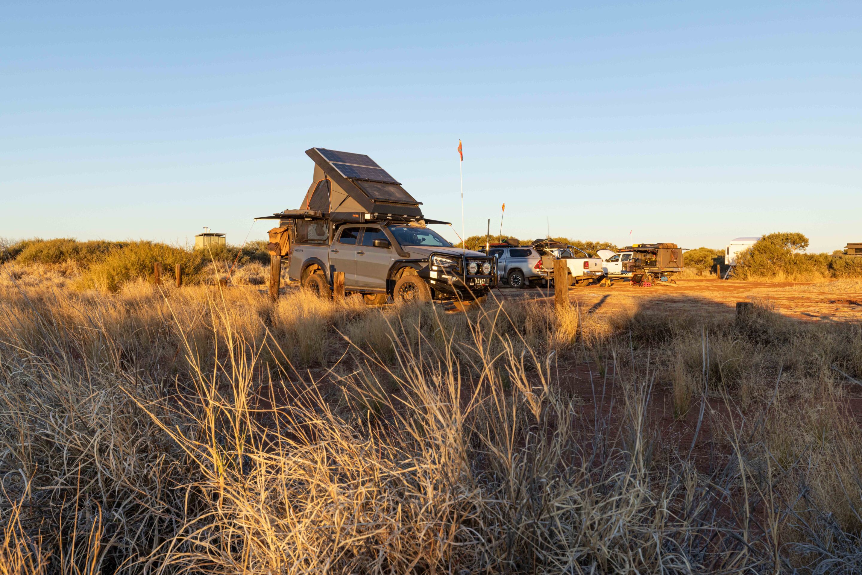 The campsite itself is basic but welcome, with cleared areas for vehicles, a drop toilet and access to clear, clean water. The real drawcard, though, is the water tank fed by the windmill. Many travellers stop here to wash clothes and enjoy a proper rinse. After days of corrugations, sand and dust, a chat with fellow adventurers feels like pure luxury.
