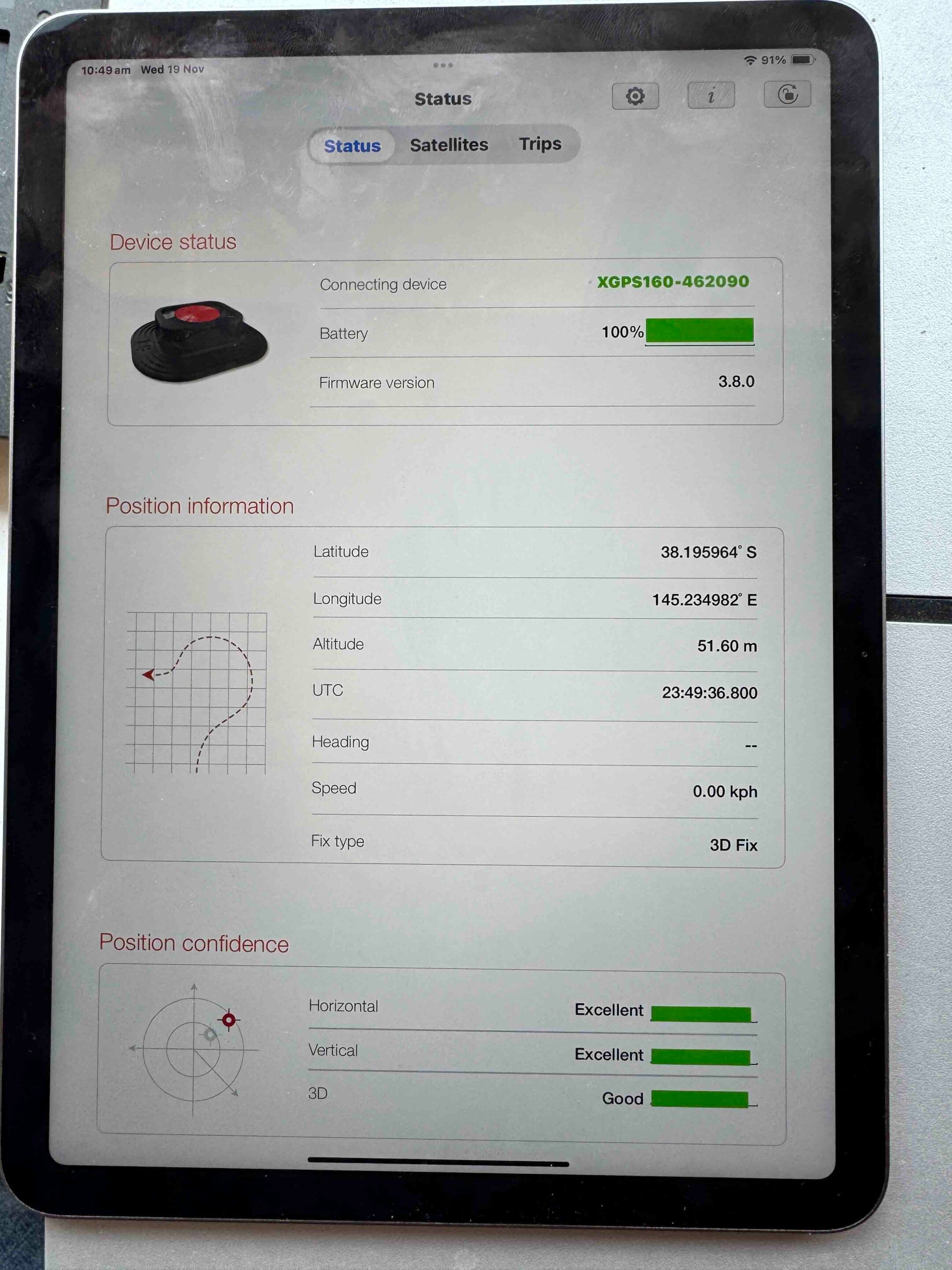 The app works well too, giving a fast read on satellite count, signal accuracy and more. It’s covered by a one-year warranty and all up, I’m pretty impressed.