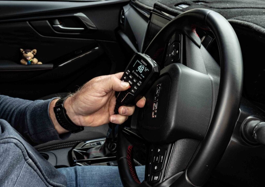 A five-metre-long cable connects the strip light to a 12-volt power outlet. Connecting the cable to the strip light is a screw connector, while at the other end a fused power plug can fit a cigarette lighter socket or a merit socket. The kit also includes four Velcro fixing straps.