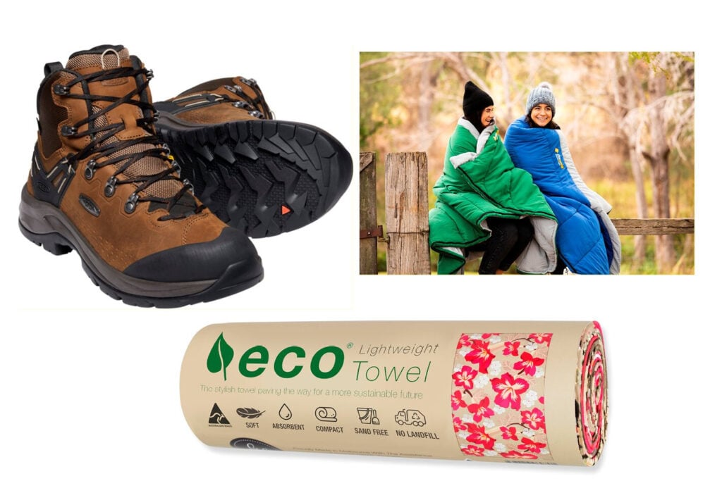 Keen boots + ECO Towel + OzTrail sleeping bags