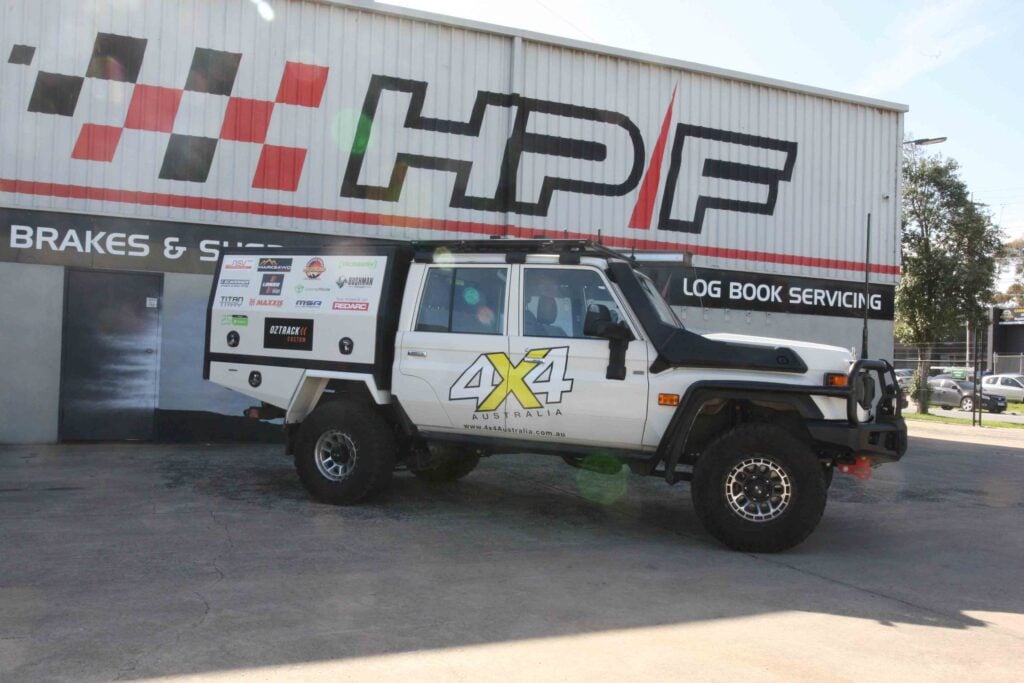 It currently has a two-inch Dobinson MRR lift with 295/70R17 Cepek Extreme tyres on Dirty Life DT-1 beadlock rims. Other gear includes an LRA long-range tank; Bestop rear twill canopy; and a Rugged Ridge bull bar with a pair of Narva 215s.