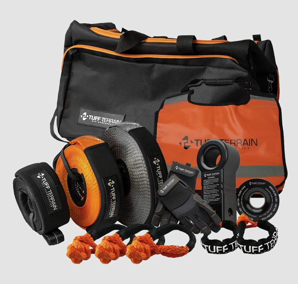 The Tuff Terrain Bush Recovery Kit Lite provides essential 4×4 recovery gear in a single, heavy-duty bag, keeping all components organised and easy to access.