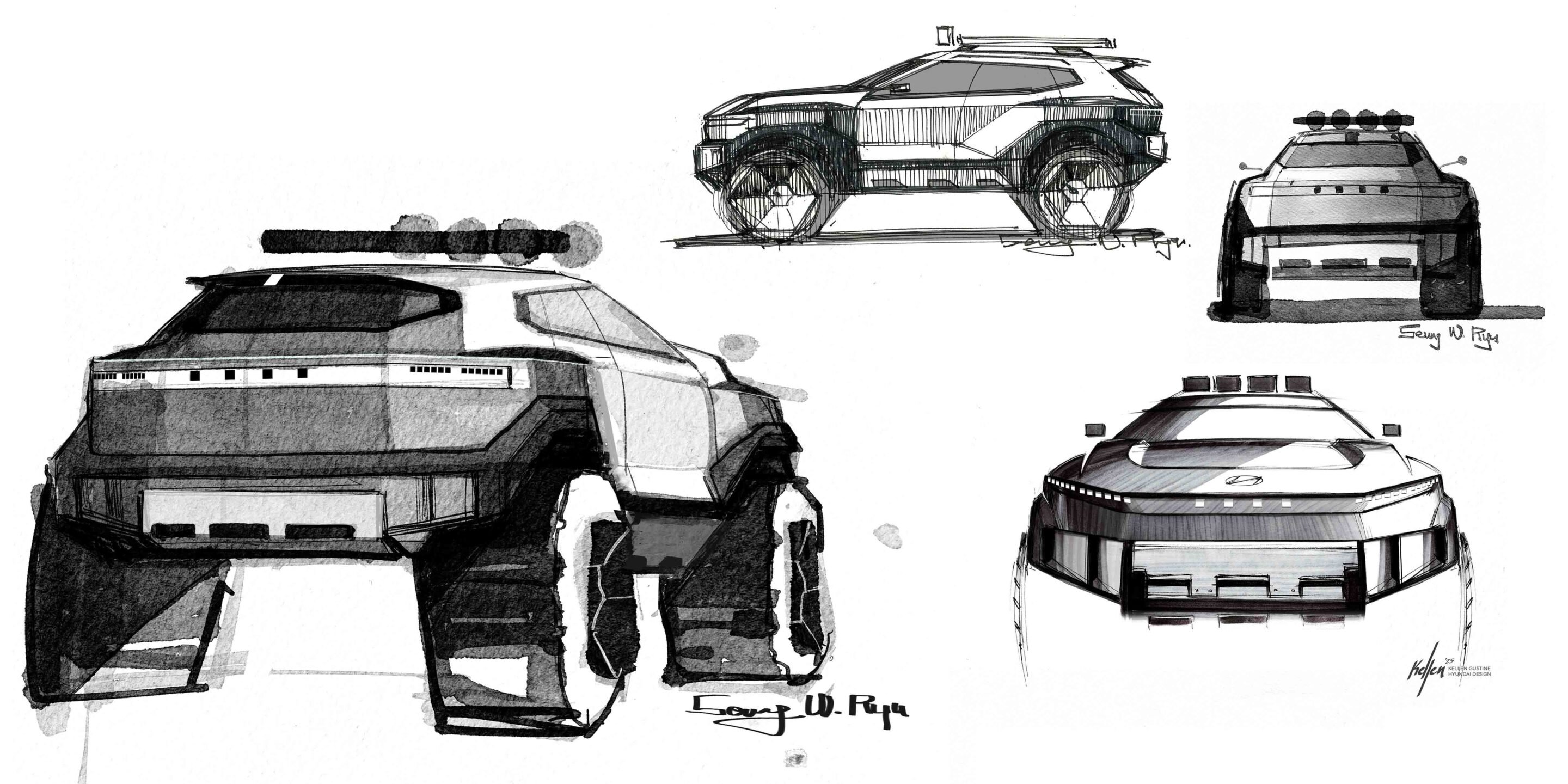 Designed at Hyundai America Technical Center in Irvine, California, the CRATER is a compact off-road SUV concept built on a compact monocoque architecture. It features steep approach and departure angles, 18-inch hexagonal wheels fitted with 33-inch off-road tyres, a wide skid plate, roof platform for auxiliary equipment, limb risers, and protective rocker panels.