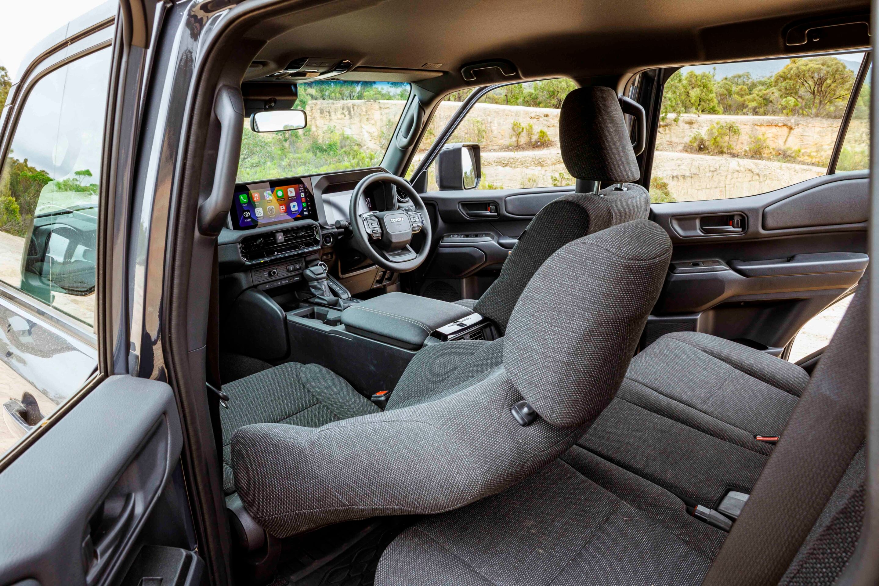 For a base model, the Prado GX isn’t short on standard equipment. Like the rest of the range, the interior is well equipped, starting with a premium 12.3-inch multimedia screen compatible with wireless Apple CarPlay and Android Auto, Bluetooth connectivity and cloud-based, in-built sat-nav. The Toyota sound system is impressive for an entry-level model, with a 10-speaker setup and a 200mm subwoofer handling audio duties.